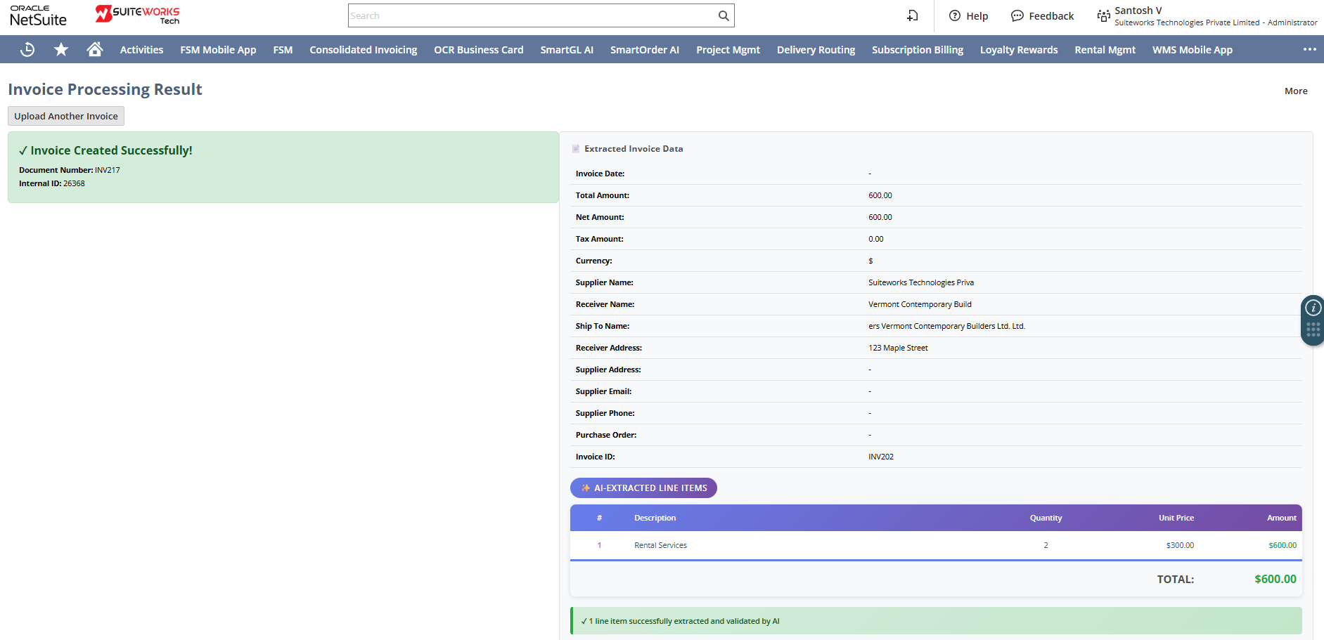 SuiteWorks Tech’s NetSuite Invoice OCR Software is purpose-built to automate invoice data capture and field mapping directly within NetSuite. This intelligent solution enables businesses to upload invoice PDFs, automatically extract key data using advanced OCR technology, and map the information accurately to the correct NetSuite fields using AI.